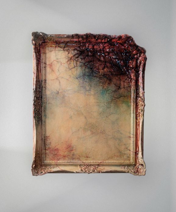 plaster bandage form, pastel, oil, resin coating, 66 x 50 cm, 2024